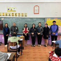 ดร.พะโยม ชิณวงศ์ ผู้อำนวยการ และ คณะนิเทศอาสา จากสถาบันพัฒนาโรงเรียนคุณธรรม มูลนิธิยุวพัฒน์ นิเทศติดตามโครงงานคุณธรรม